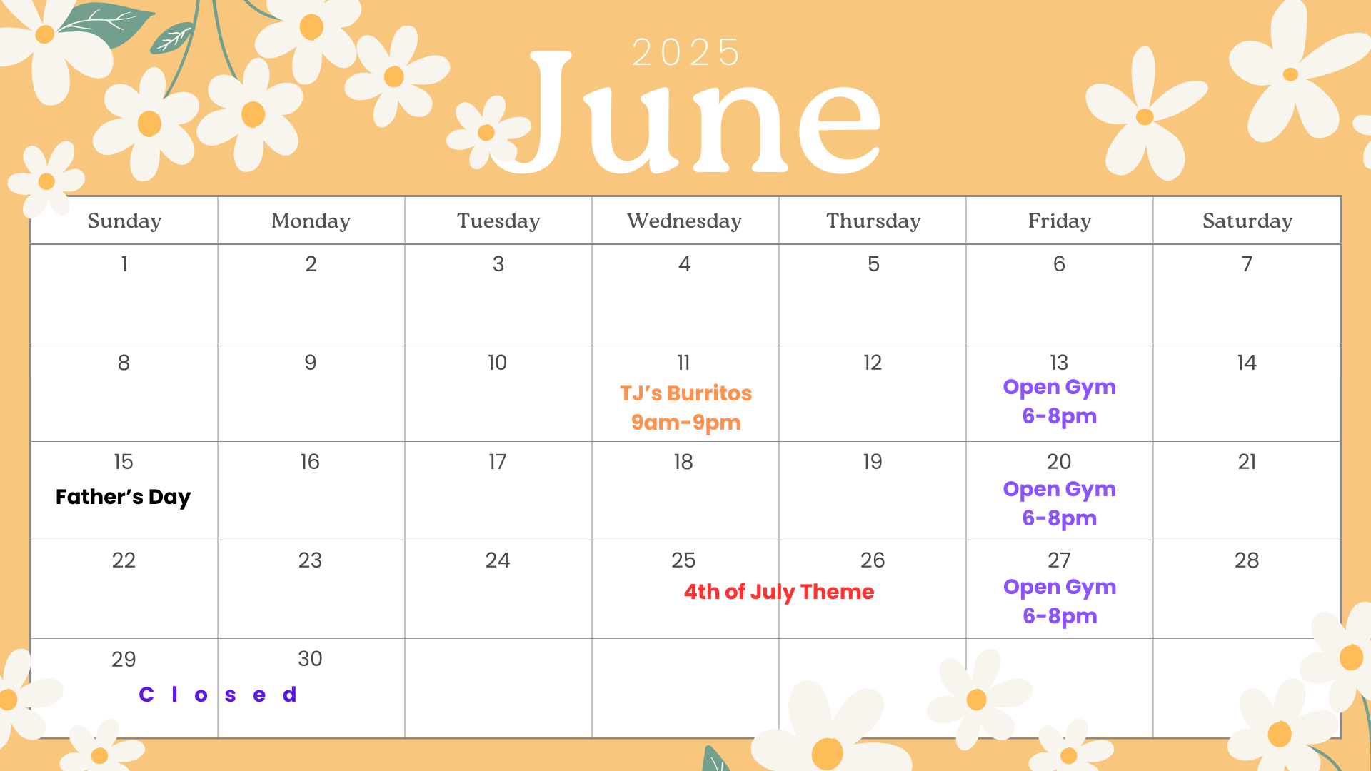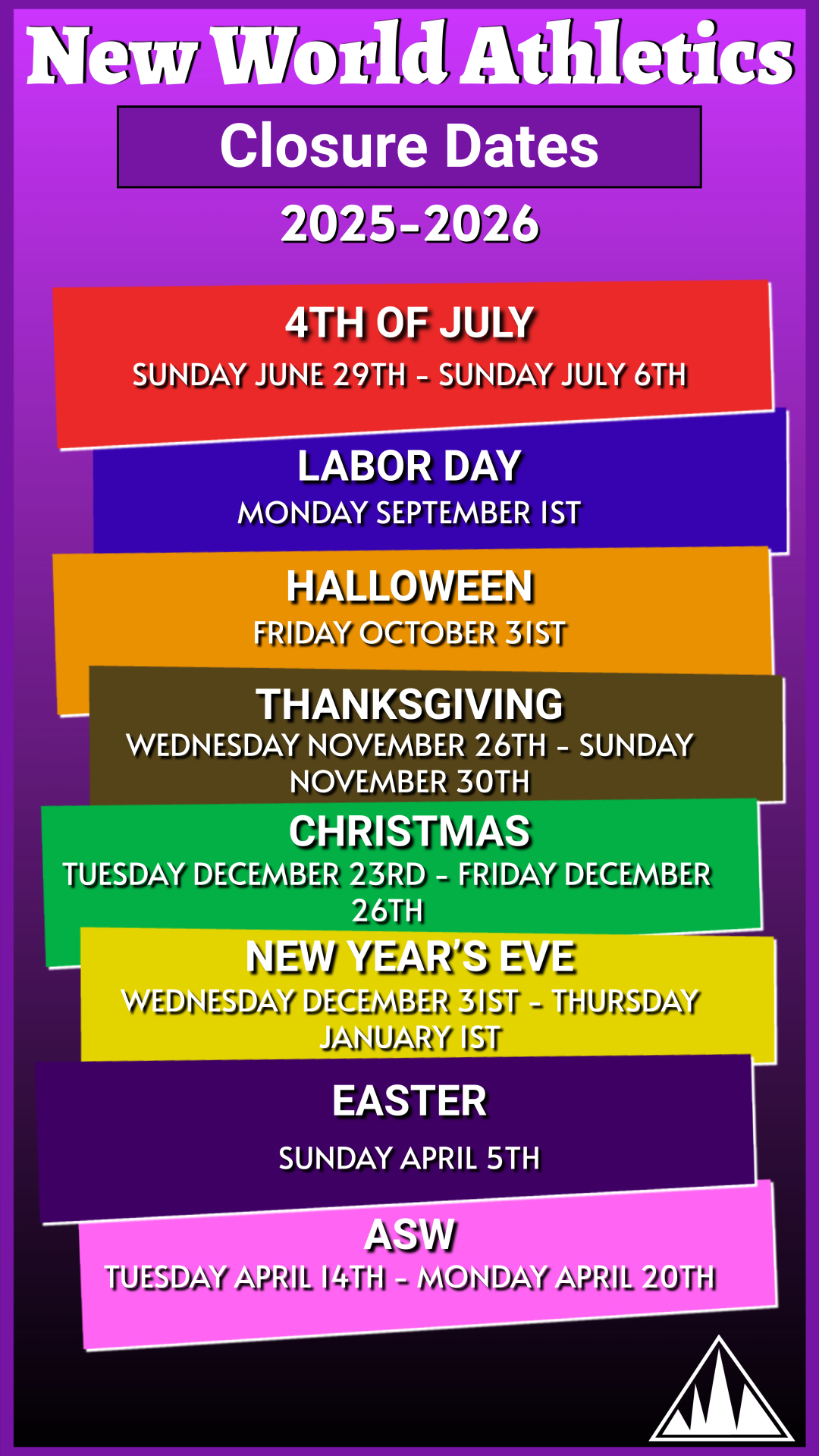 2025-2026 Gym Closure Dates: